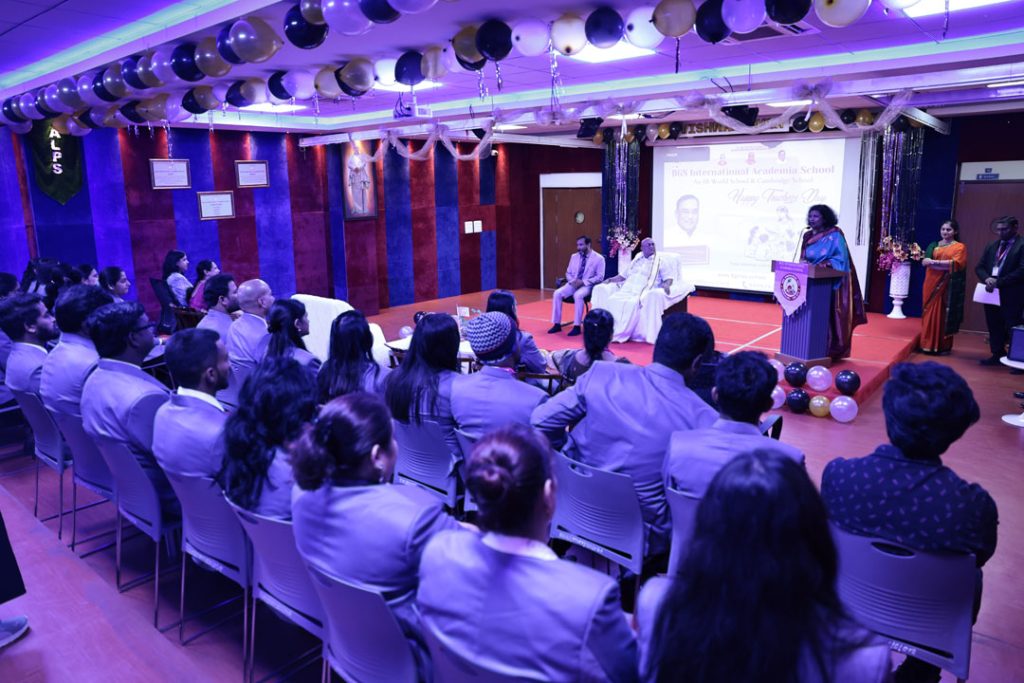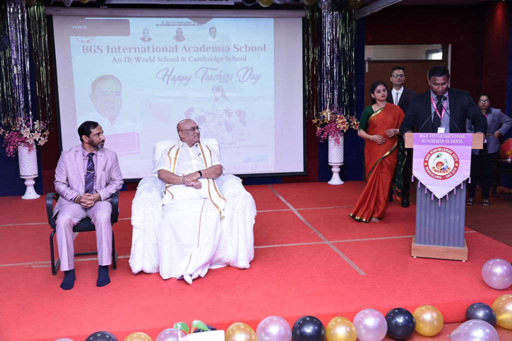 A good teacher can inspire hope, ignite the imagination and instill a love for learning. To honour all the valuable teachers, Teachers Day celebration was organized at BGSIAS. On the auspicious occasion of teacher’s day Poojya Sri Sri Dr. Lord Prakashnath Swamiji visited the school and personally wished all the teachers by presenting a Momento to them on stage which created an everlasting and most memorable moment for all the teachers. Later, Students organized a beautiful celebration to honour all their teachers. The student’s celebration started by organising a game called scavengers hunt to all the teachers which was filled with lot of fun and excitement, the celebration continued with speech, dance and a humorous skit presented by students and teachers enjoyed all of them. A beautiful video presentation made by admin team for all the teachers made them realize the importance and value of this profession. The complete day was filled with good memories for teachers which will inspire them to mould their student’s life in a better way.